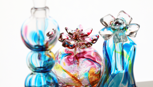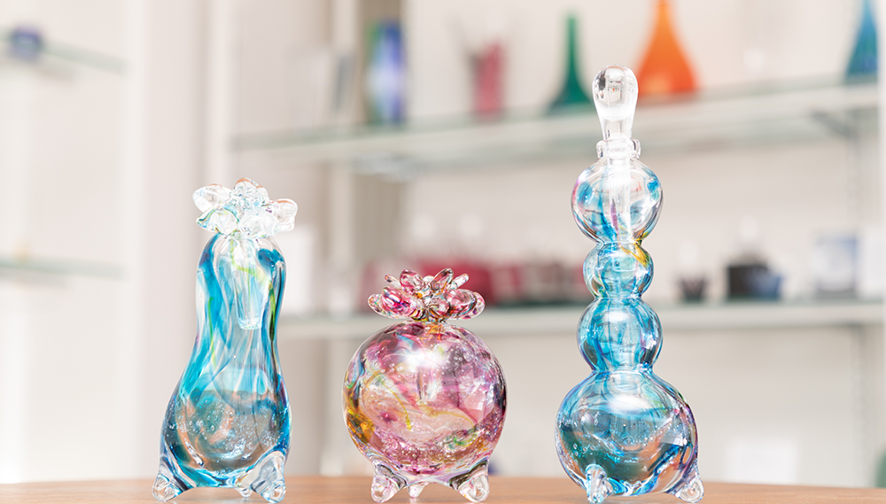 硝子の街といわれる、北海道小樽より愛と幸せを運ぶ幸愛硝子。みているだけで笑顔になれるようなガラス作品を作ることを目標に、日々灼熱の真っ赤なガラスと格闘を続ける。