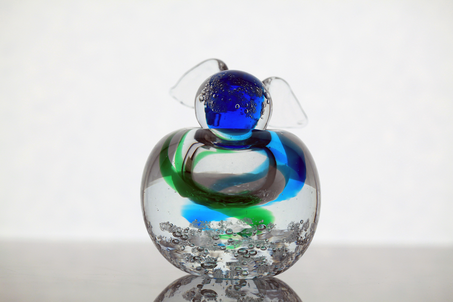 この度は理想的な形にお世話していただきまして有難うございました。美しくて可愛いガラスの入れ物に、 大切な彼が入って帰ってきました。作家は小樽の人と伺ったので、彼も北海道の人だったので喜んでいると思います。